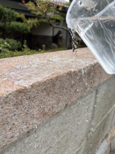 今回、石垣は苔や汚れの付着を抑えるために、撥水機能のある塗装をご要望でした。