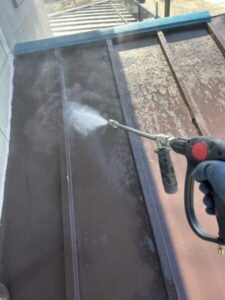 屋根の下塗りにはサビ止め効果のあるものを選定致しました!
