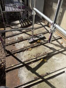 このようにして、例えば玄関前のタイルやベランダの土汚れ、基礎の苔なども落とすことが可能です。