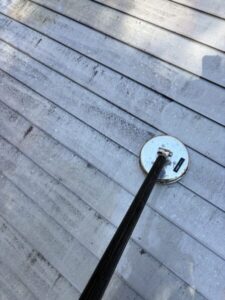 大まかの汚れが取れた跡は、デッキサーフェスという洗浄器具で丁寧に洗います。
