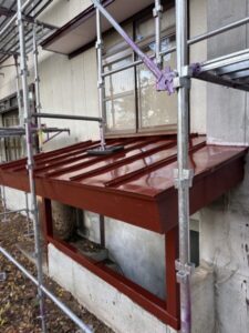 小屋根と付帯する枠も、同様に一緒にメンテナンス。