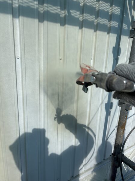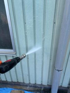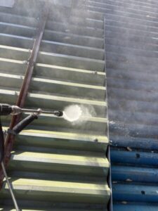 初めに高圧洗浄にて、表面に付着した物を洗い流します。